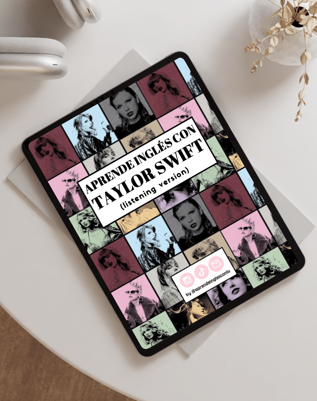 Y si eres fan de Taylor Swift, estás en el lugar perfecto. Sus letras están llenas de metáforas, juegos de palabras y significados ocultos que te ayudarán a mejorar tu vocabulario, comprensión y pronunciación de forma natural. Para que des un paso más, he creado los WORKBOOKS FOR SWIFTIES para que no solo cantes sus canciones, sino que también entiendas cada frase y expresión como un nativo. Y lo mejor… ¡mi curso de cero a experto! Elige el nivel que más se adapte a ti, o los 3 juntos para asegurarte de que no te falta de nada y disfruta de ver cómo avanza tu nivel de inglés con ese toque swiftie.
